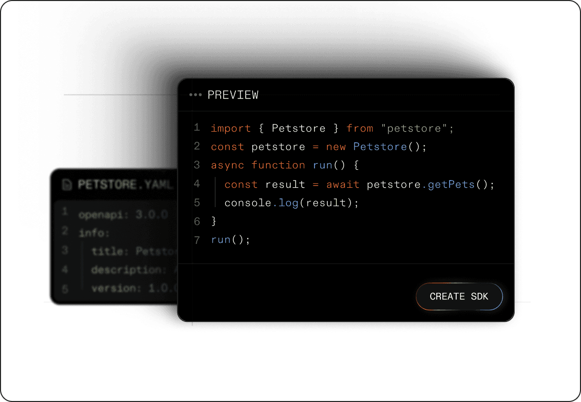 Ship SDKs that come with docs, code samples, and intuitive interfaces. Give developers everything they need to get started faster and integrate with confidence.